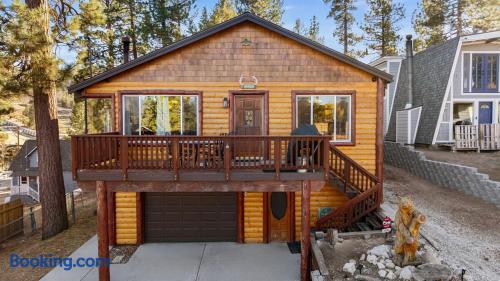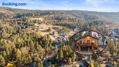 🌲 Your Big Bear Lakeview Cabin Retreat 🚶♂️ Prime Location (Walk Everywhere!) • 5-minute walk to Big Bear Lake with boat, jet ski, kayak & paddleboard rentals • 5-minute walk to The Village for restaurants, shops, cafés & nightlife • 5-minute walk to Alpine Slide at Magic Mountain • Short drive to Snow Summit & Bear Mountain ski resorts • Close to marinas, hiking trails, sledding areas & scenic viewpoints 🌄 Stunning Views & Mountain Charm Experience classic Big Bear charm with sweeping lake and mountain views from this warm and inviting 3-bedroom cabin. Perfect for families, groups, and cozy getaways—where rustic character meets modern comfort. 🌲 Cozy Mountain Living • Vaulted wood-beam ceilings & oversized windows for natural light • Stone fireplace—perfect for movie nights and snowy days • Comfortable, rustic décor for an authentic mountain retreat 🛌 Bedrooms (Sleeps up to 10) • Primary Suite – King bed • Second Bedroom – Queen bed • Third Bedroom (Family Bunk Room) – Two bunk beds, each with a Full bed on bottom and Twin/Single on top (sleeps up to 6) ✨ Comfort & Amenities • High-speed WiFi • Smart TVs with Netflix, Prime Video & YouTube • Central heating for cold nights • Fresh linens, plush towels & hotel-style toiletries • Coffee station with coffee, tea & hot cocoa • Board games & cozy reading spots 🔊 Sound System • Whole-home audio with speakers upstairs and downstairs • Connect easily using AirPlay (iPhone) or Cast (Android) • Great for soft background music when cooking or hanging out • Important: Sound carries easily beyond property lines—especially outdoors. Keep volume low and follow quiet hours. No parties or loud gatherings. 🍹 Indoor Bar Area • Dedicated indoor bar counter with stools • Perfect for evening drinks, entertaining, or setting up snacks • Conveniently located next to the entertainment spaces 🎱 Full Game Room (Entertainment Zone!) • Billiards table • Basketball arcade game • Poker table • Dart game • Ping pong table • A fun, dedicated hub for families, groups & retreats 🍳 Kitchen & Dining • Fully equipped kitchen with refrigerator, microwave, dishwasher, electric cooktop & oven • Eat-in dining area with plenty of seating • Washer & dryer for guest use 🌄 Outdoor Spaces • Large deck with beautiful lake & mountain views • Private above-ground Jacuzzi/hot tub for relaxing after hiking, boating, or skiing • Surrounded by trees and peaceful mountain scenery 🚗 Parking • Main driveway fits up to 3 cars comfortably • Extended driveway fits additional vehicles, but is on a steeper incline and weather dependent • No street parking allowed per city regulations 🧼 Clean, Safe, & Guest-Ready • Professionally cleaned before every stay • Smart lock entry for seamless self-check-in • Outdoor only security camera facing driveway for guest safety • No indoor cameras • Smoke & carbon monoxide detectors throughout