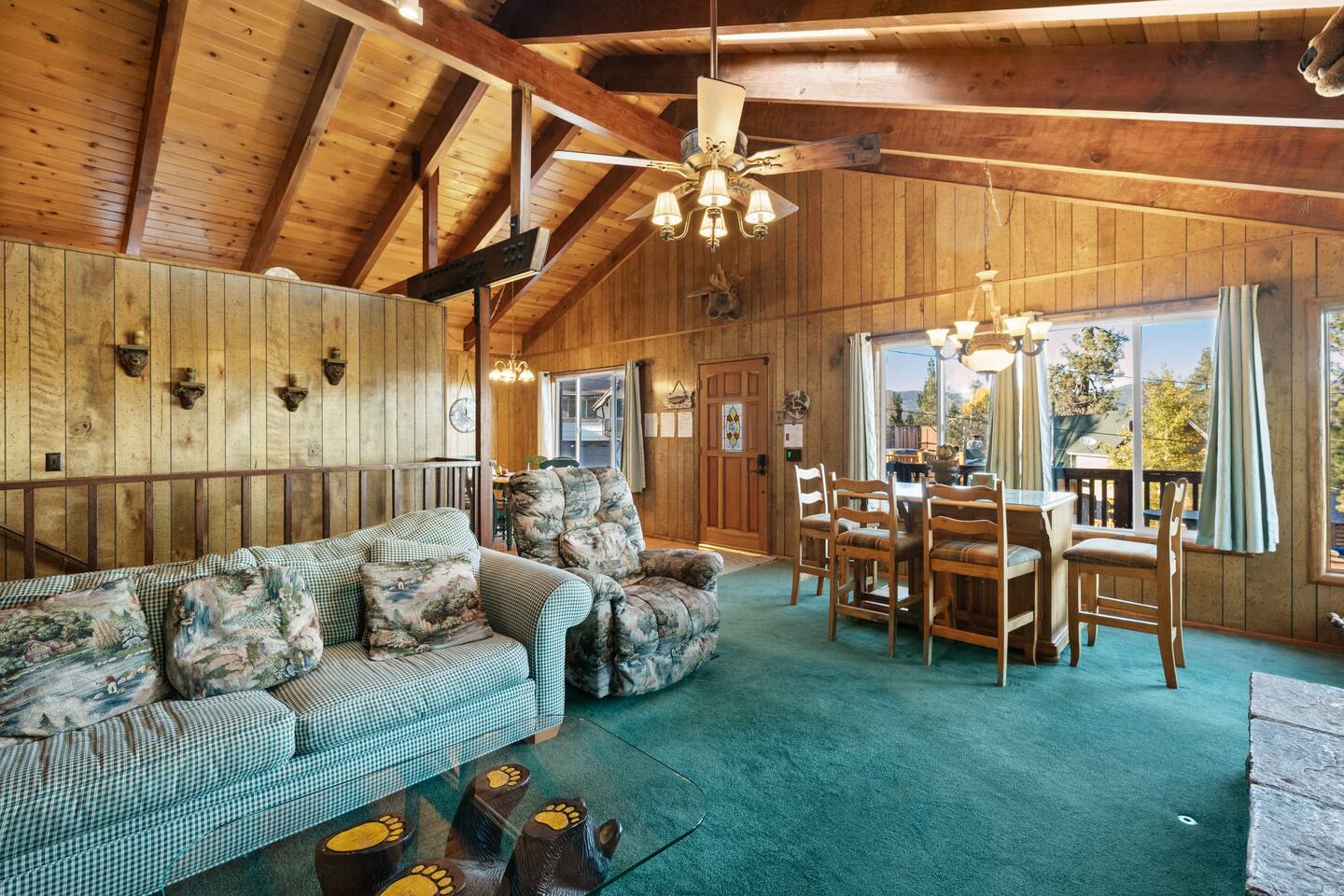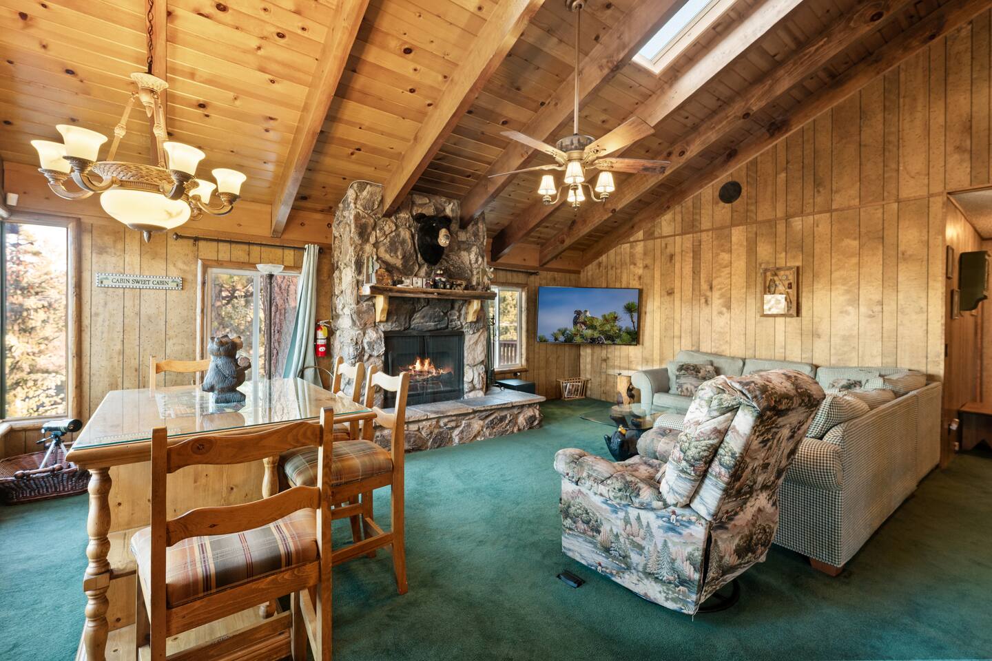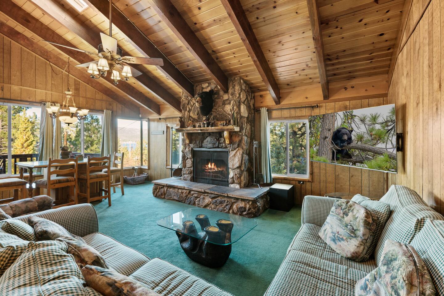 Experience classic Big Bear charm with sweeping lake and mountain views at this cozy 3-bedroom cabin—perfectly located just moments from The Village. With rustic wood beams, a stone fireplace, and a fun game room, this home blends comfort, character, and unforgettable mountain vibes.