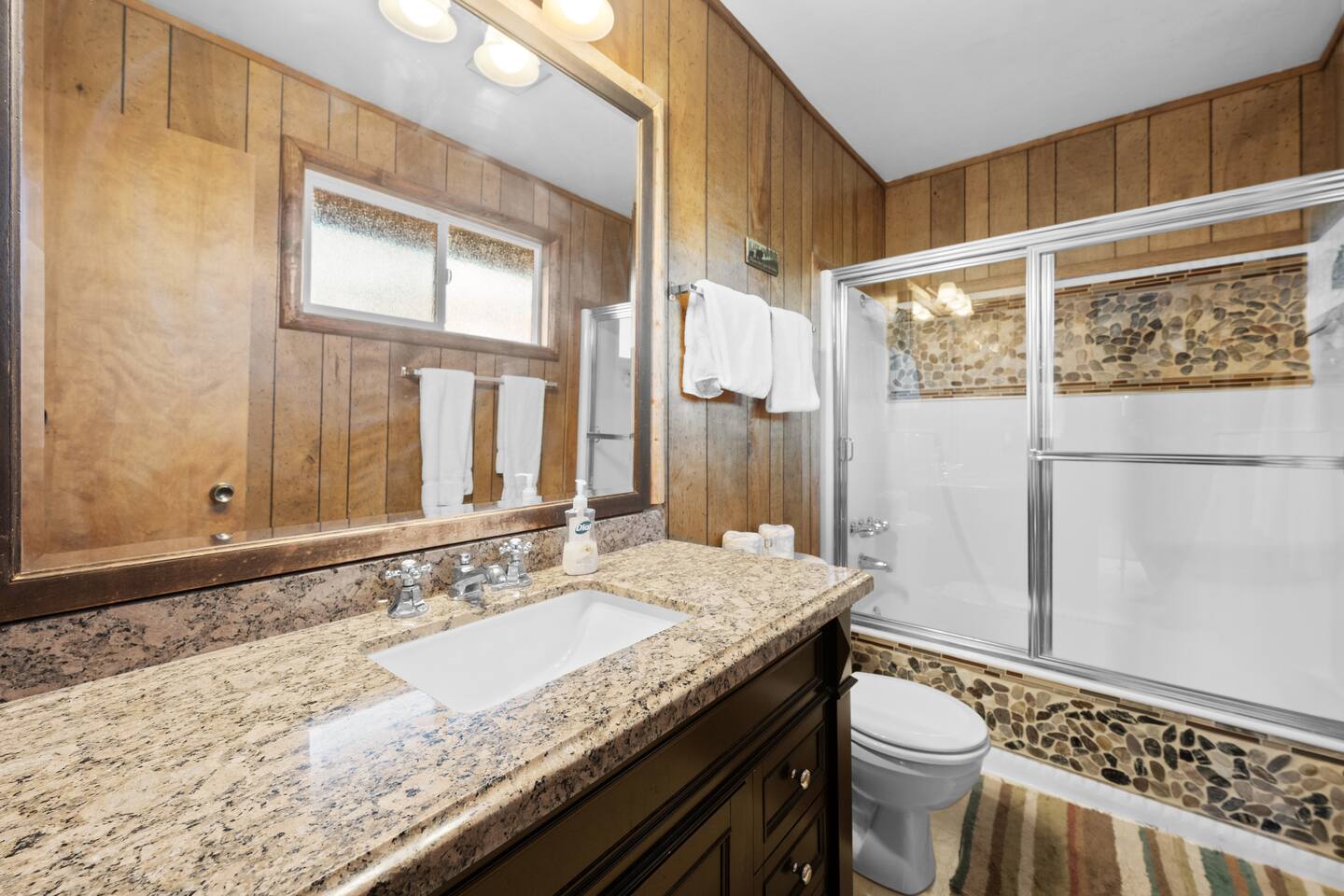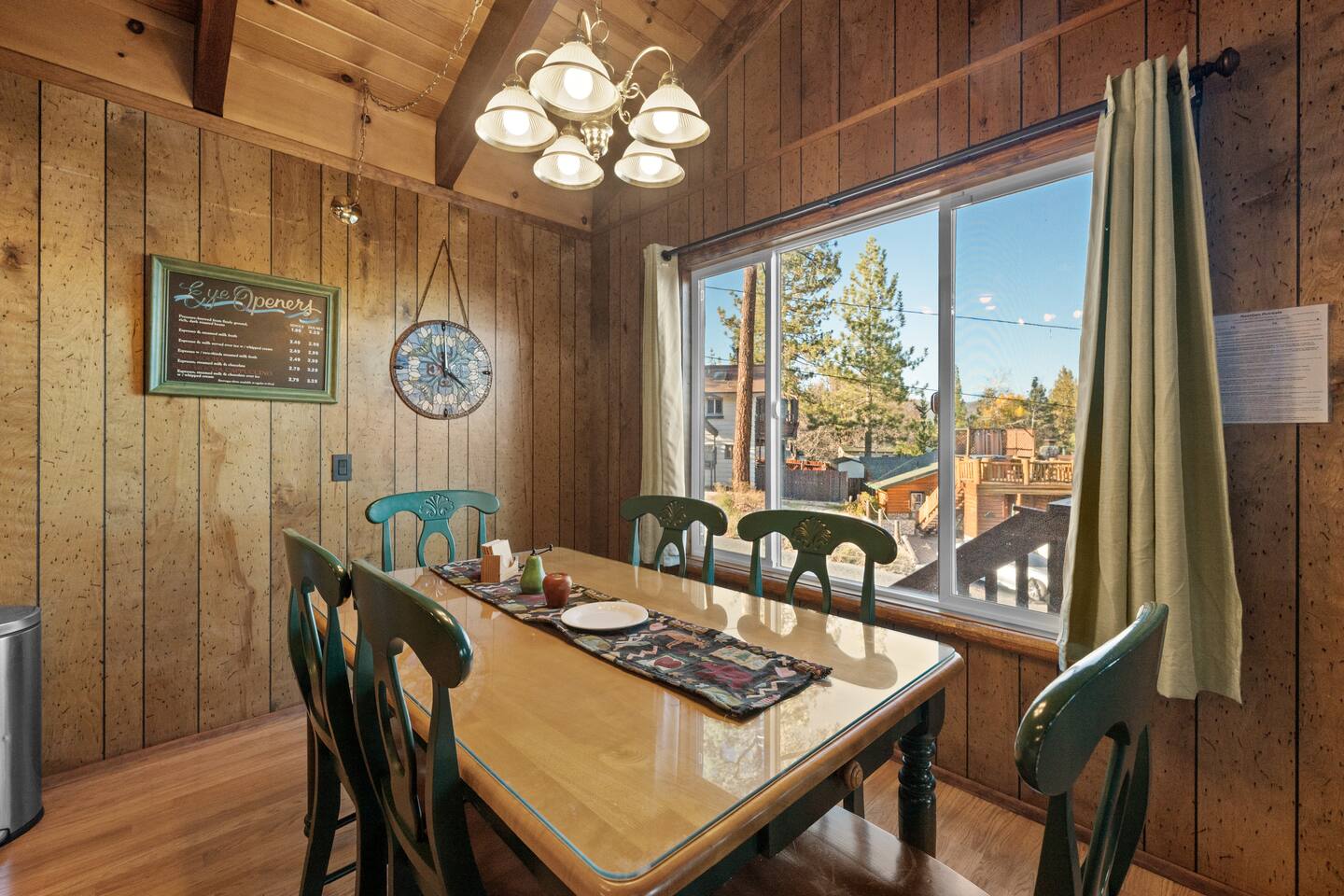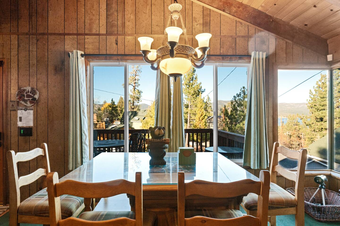 🌲 Your Big Bear Lakeview Cabin Retreat 🚶♂️ Prime Location (Walk Everywhere!) • 5-minute walk to Big Bear Lake with boat, jet ski, kayak & paddleboard rentals • 5-minute walk to The Village for restaurants, shops, cafés & nightlife • 5-minute walk to Alpine Slide at Magic Mountain • Short drive to Snow Summit & Bear Mountain ski resorts • Close to marinas, hiking trails, sledding areas & scenic viewpoints 🌄 Stunning Views & Mountain Charm Experience classic Big Bear charm with sweeping lake and mountain views from this warm and inviting 3-bedroom cabin. Perfect for families, groups, and cozy getaways—where rustic character meets modern comfort. 🌲 Cozy Mountain Living • Vaulted wood-beam ceilings & oversized windows for natural light • Stone fireplace—perfect for movie nights and snowy days • Comfortable, rustic décor for an authentic mountain retreat 🛌 Bedrooms (Sleeps up to 10) • Primary Suite – King bed • Second Bedroom – Queen bed • Third Bedroom (Family Bunk Room) – Two bunk beds, each with a Full bed on bottom and Twin/Single on top (sleeps up to 6) ✨ Comfort & Amenities • High-speed WiFi • Smart TVs with Netflix, Prime Video & YouTube • Central heating for cold nights • Fresh linens, plush towels & hotel-style toiletries • Coffee station with coffee, tea & hot cocoa • Board games & cozy reading spots 🔊 Sound System • Whole-home audio with speakers upstairs and downstairs • Connect easily using AirPlay (iPhone) or Cast (Android) • Great for soft background music when cooking or hanging out • Important: Sound carries easily beyond property lines—especially outdoors. Keep volume low and follow quiet hours. No parties or loud gatherings. 🍹 Indoor Bar Area • Dedicated indoor bar counter with stools • Perfect for evening drinks, entertaining, or setting up snacks • Conveniently located next to the entertainment spaces 🎱 Full Game Room (Entertainment Zone!) • Billiards table • Basketball arcade game • Poker table • Dart game • Ping pong table • A fun, dedicated hub for families, groups & retreats 🍳 Kitchen & Dining • Fully equipped kitchen with refrigerator, microwave, dishwasher, electric cooktop & oven • Eat-in dining area with plenty of seating • Washer & dryer for guest use 🌄 Outdoor Spaces • Large deck with beautiful lake & mountain views • Private above-ground Jacuzzi/hot tub for relaxing after hiking, boating, or skiing • Surrounded by trees and peaceful mountain scenery 🚗 Parking • Main driveway fits up to 3 cars comfortably • Extended driveway fits additional vehicles, but is on a steeper incline and weather dependent • No street parking allowed per city regulations 🧼 Clean, Safe, & Guest-Ready • Professionally cleaned before every stay • Smart lock entry for seamless self-check-in • Outdoor only security camera facing driveway for guest safety • No indoor cameras • Smoke & carbon monoxide detectors throughout