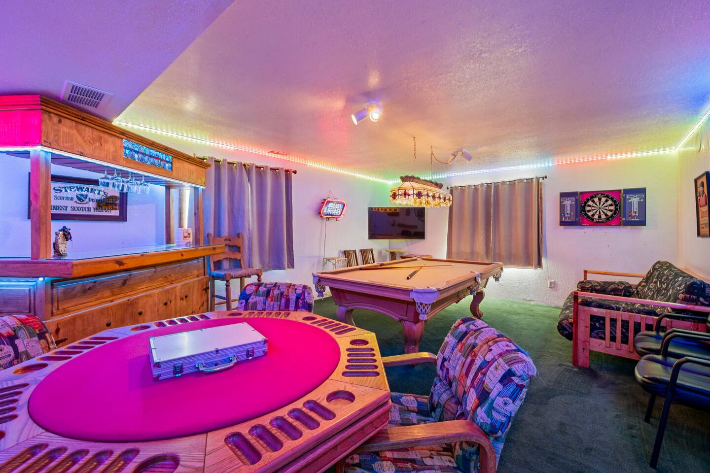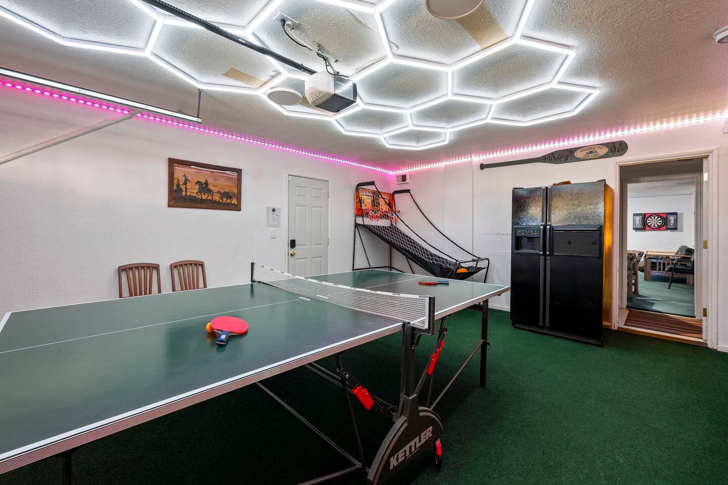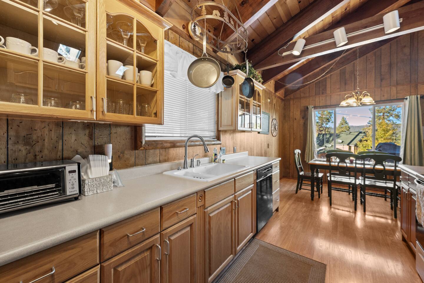 🌲 Your Big Bear Lakeview Cabin Retreat 🚶♂️ Prime Location (Walk Everywhere!) • 5-minute walk to Big Bear Lake with boat, jet ski, kayak & paddleboard rentals • 5-minute walk to The Village for restaurants, shops, cafés & nightlife • 5-minute walk to Alpine Slide at Magic Mountain • Short drive to Snow Summit & Bear Mountain ski resorts • Close to marinas, hiking trails, sledding areas & scenic viewpoints 🌄 Stunning Views & Mountain Charm Experience classic Big Bear charm with sweeping lake and mountain views from this warm and inviting 3-bedroom cabin. Perfect for families, groups, and cozy getaways—where rustic character meets modern comfort. 🌲 Cozy Mountain Living • Vaulted wood-beam ceilings & oversized windows for natural light • Stone fireplace—perfect for movie nights and snowy days • Comfortable, rustic décor for an authentic mountain retreat 🛌 Bedrooms (Sleeps up to 10) • Primary Suite – King bed • Second Bedroom – Queen bed • Third Bedroom (Family Bunk Room) – Two bunk beds, each with a Full bed on bottom and Twin/Single on top (sleeps up to 6) ✨ Comfort & Amenities • High-speed WiFi • Smart TVs with Netflix, Prime Video & YouTube • Central heating for cold nights • Fresh linens, plush towels & hotel-style toiletries • Coffee station with coffee, tea & hot cocoa • Board games & cozy reading spots 🔊 Sound System • Whole-home audio with speakers upstairs and downstairs • Connect easily using AirPlay (iPhone) or Cast (Android) • Great for soft background music when cooking or hanging out • Important: Sound carries easily beyond property lines—especially outdoors. Keep volume low and follow quiet hours. No parties or loud gatherings. 🍹 Indoor Bar Area • Dedicated indoor bar counter with stools • Perfect for evening drinks, entertaining, or setting up snacks • Conveniently located next to the entertainment spaces 🎱 Full Game Room (Entertainment Zone!) • Billiards table • Basketball arcade game • Poker table • Dart game • Ping pong table • A fun, dedicated hub for families, groups & retreats 🍳 Kitchen & Dining • Fully equipped kitchen with refrigerator, microwave, dishwasher, electric cooktop & oven • Eat-in dining area with plenty of seating • Washer & dryer for guest use 🌄 Outdoor Spaces • Large deck with beautiful lake & mountain views • Private above-ground Jacuzzi/hot tub for relaxing after hiking, boating, or skiing • Surrounded by trees and peaceful mountain scenery 🚗 Parking • Main driveway fits up to 3 cars comfortably • Extended driveway fits additional vehicles, but is on a steeper incline and weather dependent • No street parking allowed per city regulations 🧼 Clean, Safe, & Guest-Ready • Professionally cleaned before every stay • Smart lock entry for seamless self-check-in • Outdoor only security camera facing driveway for guest safety • No indoor cameras • Smoke & carbon monoxide detectors throughout